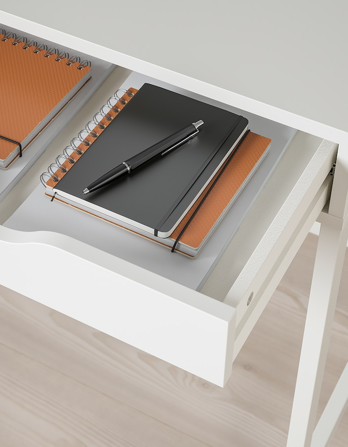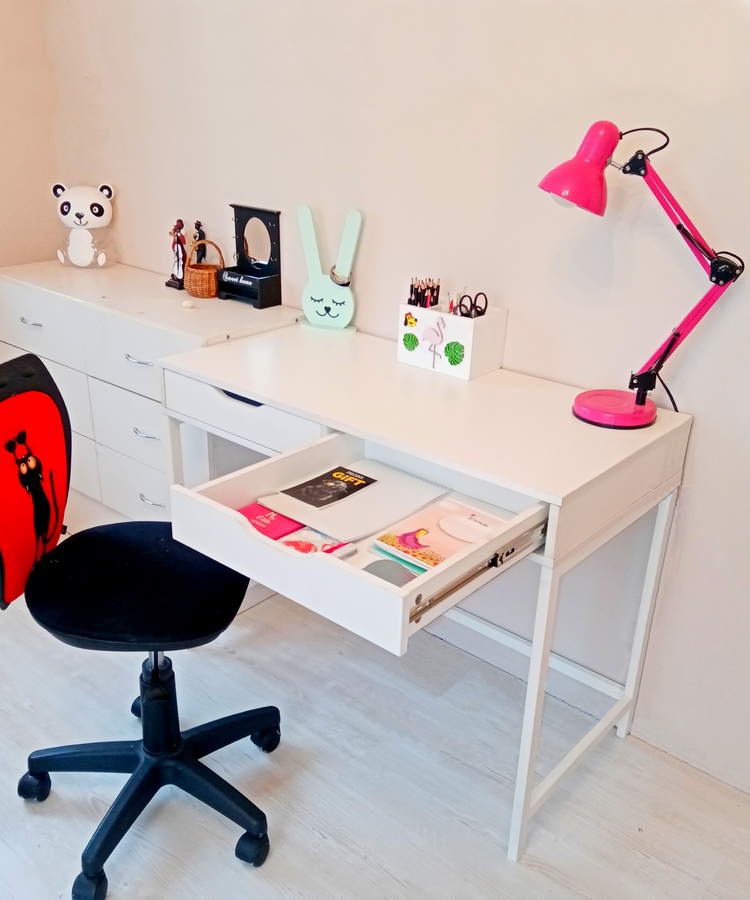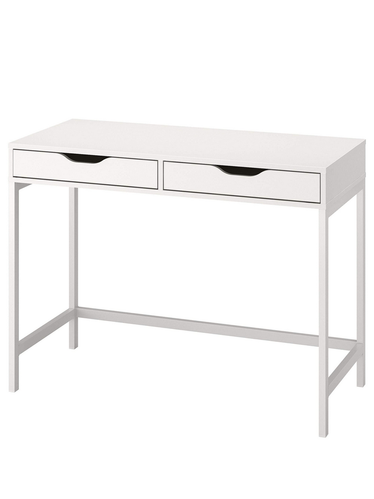 Cтолы на металлокаркасе выгодно отличаются от своих собратьев несущей способностью. Металлокаркас ножек и жесткая двойная конструкция столешницы толщиной 32 мм (2 по 16) с легкостью выдерживают вес любого компьютера и даже вес человека. Ножки крашенные порошковой эмалью устойчивы к царапинам, сколам и влаге и сохранят свой цвет долгое время. Огромный плюс этого столика- это два вместительных выдвижных ящика глубиной 62 мм, размер ящиков 40 на 50 см . На столешнице у вас всегда будет полный порядок и комната будет выглядеть намного опрятнее и чище. Столик можно установить в любое место, поскольку задняя часть смотрится также хорошо и законченно. Направляющие шарикового типа допускают полное выдвижение ящиков. Универсальный цвет позволит применить стол в любом интерьере детской комнаты или спальни. Его очень удобно использовать как рабочий стол для подростка, поскольку в двух ящиках поместятся ручки, тетради и другие предметы, необходимые для школы. Скандинавский дизайн и универсальные цвета позволят применить нашу мебель и как туалетный столик для спальни. Разместив на столешнице зеркало, женщины смогут использовать его в своих нелегких манипуляциях с предметами для красоты. Стол будет уместен и в прихожей под зеркалом, в ящиках можно разместить перчатки, ключи и другую мелочь. Собрать стол легко в домашних условиях по подробной инструкции и с помощью шестигранника, который идет в комплекте. Стол поставляется полностью разобранный по стандарту икея.